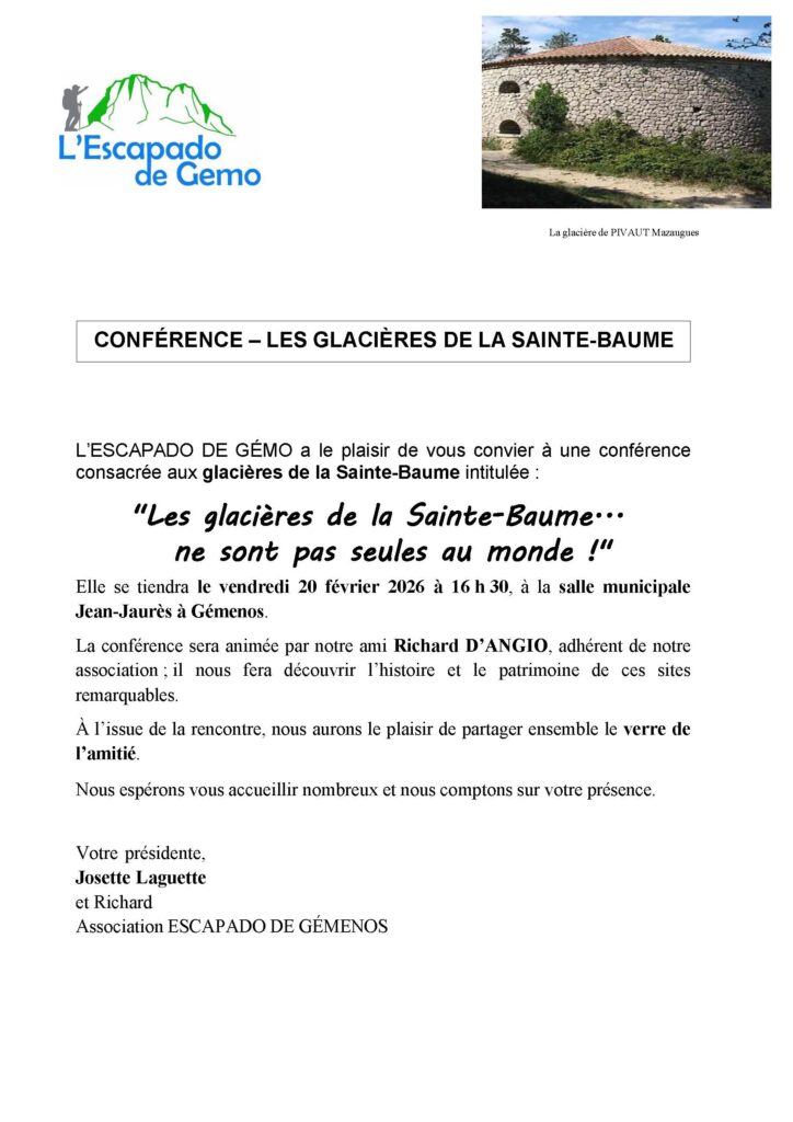 Conférence à Gémenos le 20 février 2026 : Les glacières de la Sainte-Baume… ne sont pas seules au monde !