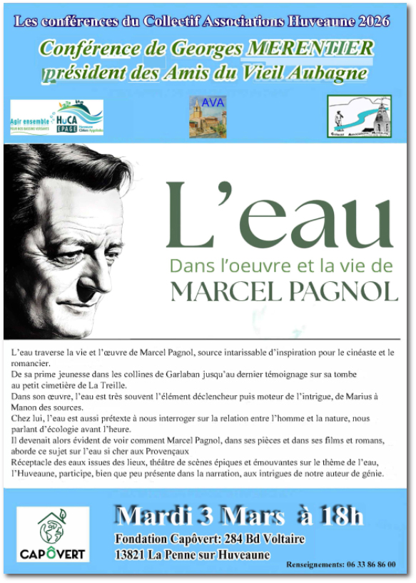 Si le nom de l’Huveaune est très peu mentionné dans l’œuvre de Marcel Pagnol, le fleuve reste présent dans nos imaginaires quand l’auteur parle des sources, des drames et conflits dont il fait la narration avec un talent inimitable.